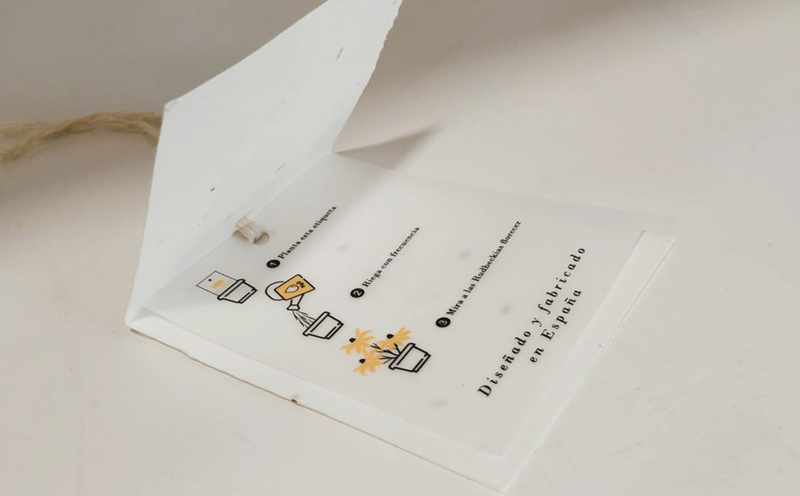 Las etiquetas de KLOUT están fabricadas en papel de semillas. Estas etiquetas biodegradables están pensadas para ser plantadas una vez no se necesiten, con lo que su vida útil es efímera. KLOUT utiliza semillas de Rudbeckia en sus etiquetas. ¡Planta la tuya y las verás florecer!
