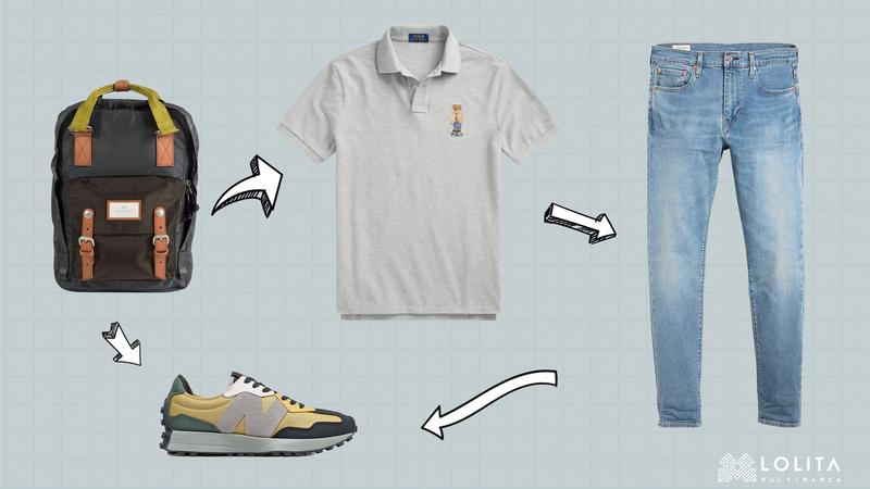 El look, arriba representado, está compuesto por un polo de la colección Polo Bear de Polo Ralph Lauren, que apuesta una vez más por la reinvención de los clásicos. La marca americana, en esta coleción de primavera verano, apuesta por el lanzamiento de prendas icónicas que aunan la calidad propia de la firma y un diseño sofisticado que no pasará de moda. Las zapatillas escogidas son las nuevas New Balance 327, inspiradas en el Heritage o estilo retro de los 70´S. Estas zapatillas no dejarán indiferente a tu padre y más aún si las combinas con la nueva mochila Doughnut, disponible en una amplia gama de colores fabulosos. Para finalizar, un eterno vaquero de Levi´s, corte Tapered, que se convertirá en la prenda estrella del armario de nuestros padres.
