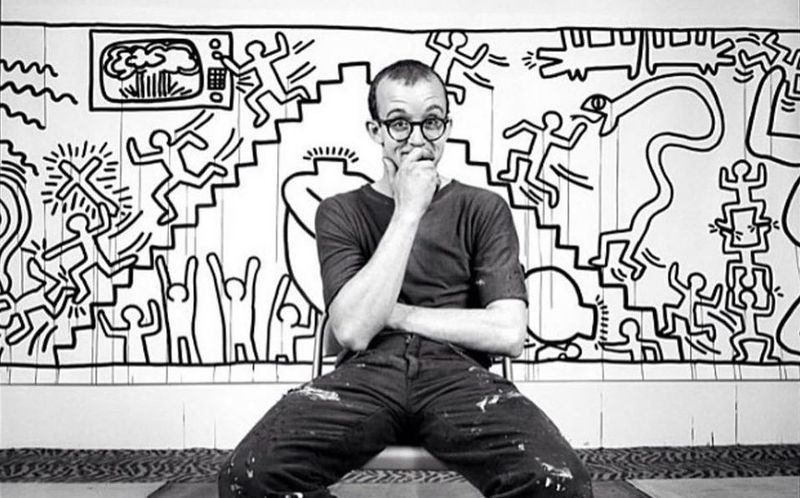 Keith Haring (1958-1990) fue un artista estadounidense y un gran representante del Pop Art de los años 80´S. Su estilo pictórico se caracteriza por sus sencillos dibujos que incluyen animales y figuras danzando, perros, bebés gateando, platillos volantes... Haring también se inspiró en la escena del graffiti para muchas de sus obras. Empezó a ser reconocido gracias a sus pinturas en el metro de Nueva York. Las obras de Haring siempre tienen más de un significado, por lo que su arte es tan diverso como las personas que lo interpretan.