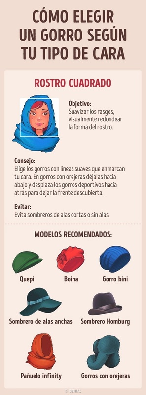 Quienes tienen un rostro cuadrado deben usar sombreros con formas redondas y alas medianas. Si el modelo es asimétrico te quedará mucho mejor.